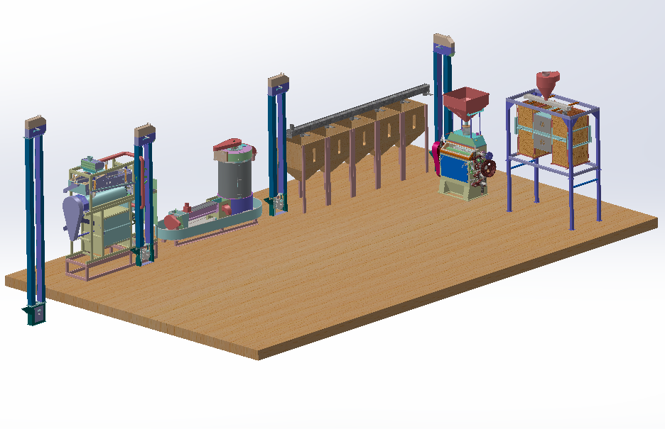 7.Makinede Yine Taşıma Makinesidir Elevatör veya Boru Helezon Olabilir. 8.Makine Kabuk Soyma Makinesidir. Tavlanan Buğdayın Kabuğunun Soyulmasını Sağlar. 9. Makine Taşıma Makinesi